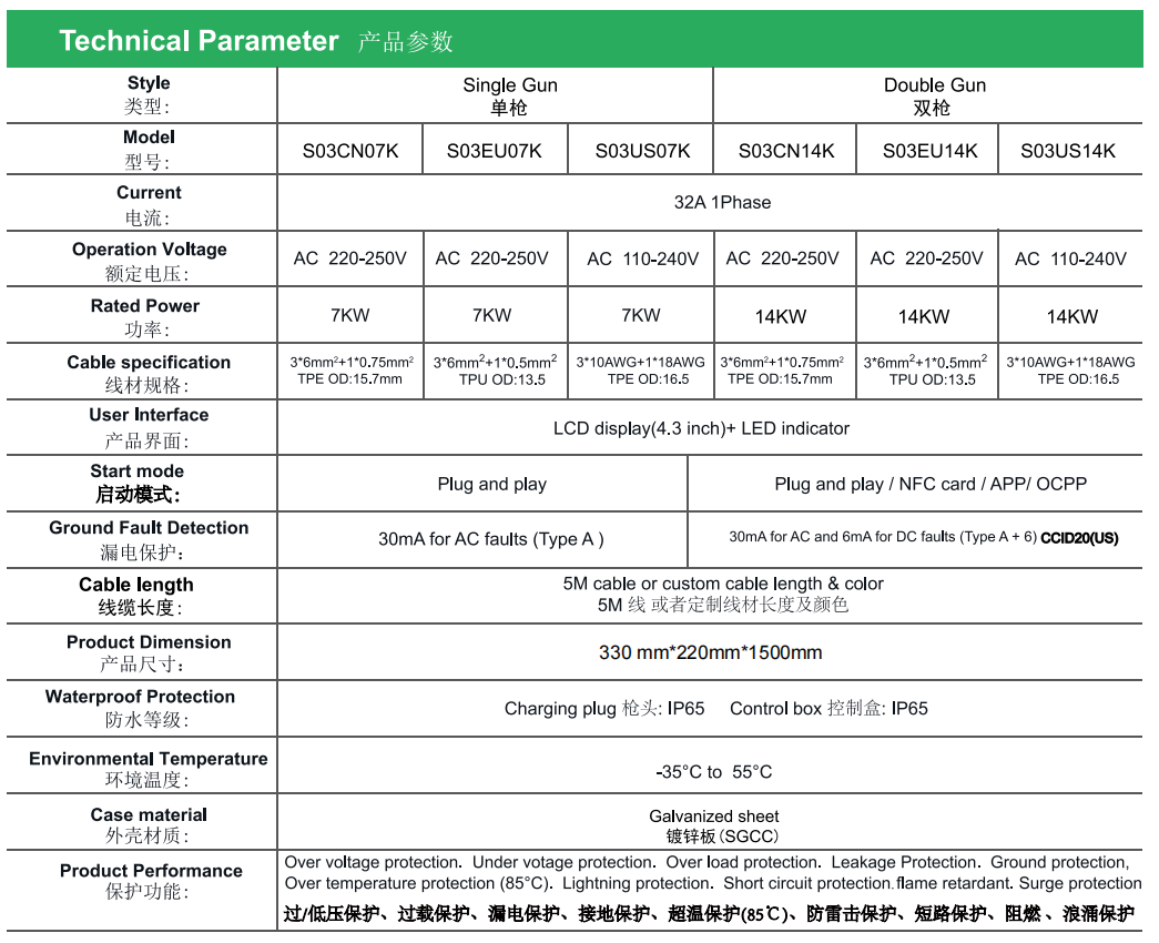 Output Power: Single gun power 7~22kW,Dual guns support up to 14KW